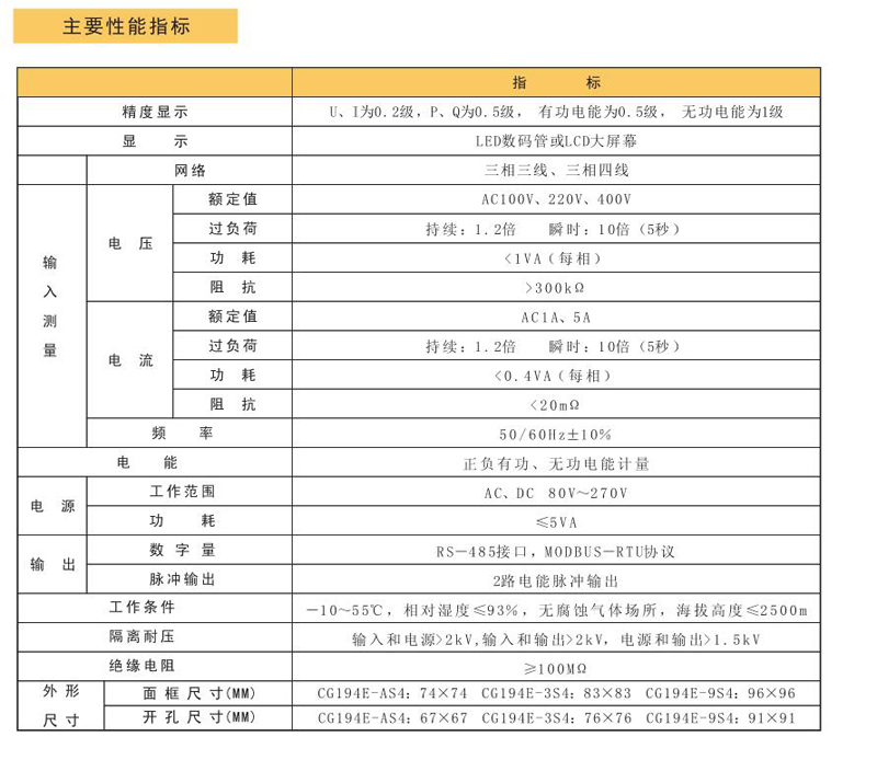 CG194E系列多功能電力儀表是針對電力系統、工礦企業、公共設施、 智能大廈等的電力智能監控和電能計量等需求而設計,能夠高精度測量三相電網中的三相電壓、三相電流、有功功率、無功功率、視在功率、頻率、功率因數、四象限電能,并具有數字通訊、電能脈沖輸出功能。CG194E系列多功能電力儀表可以直接取代常規測量指示儀表、電能計量表以及相關的輔助單元。作為一種先進的智能化、數字化的電網前端采集元件,該儀表可以應用于各種控制系統,能源管理系統,變電站自動化,配電網自動化,小區電力監控,工業自動化,智能建筑,智能配電盤,開關柜中,具有安裝方便,接線簡單,維護方便,工程量小,現場可編程輸入參數的特點。