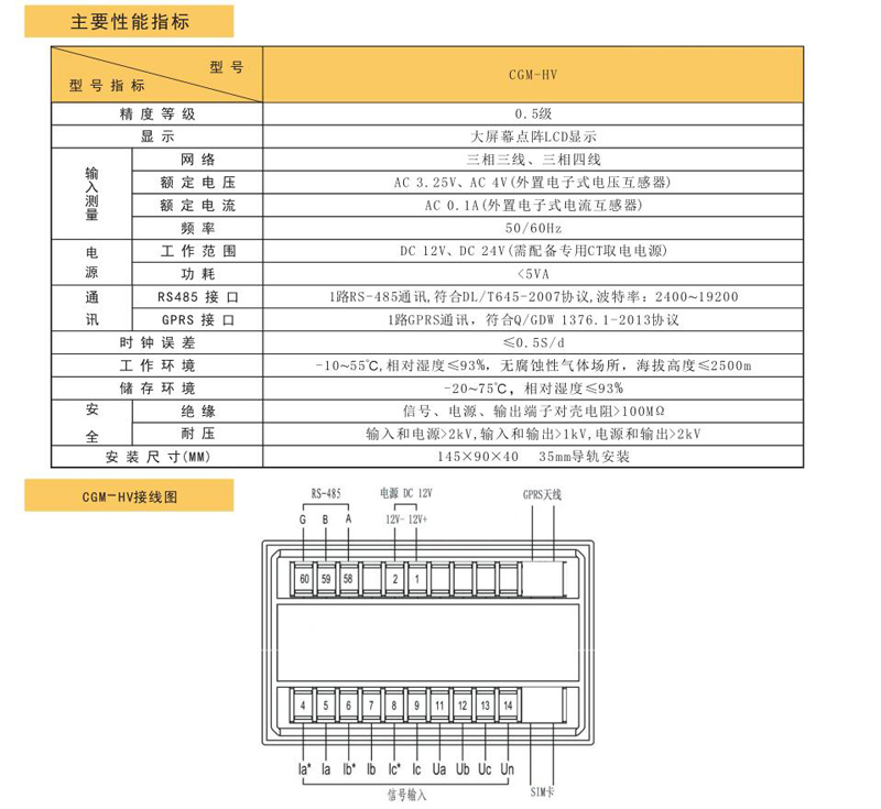 CGM-HV環網柜型高壓電能表可測量各種電力參數,具備電能計量、需量統計、SOE監控記錄并帶有時標、復費率計量等功能。并具有RS485和GPRS通訊接口, 與主站的通信協議符合Q/GDW1376.1-2013,與本地的負荷控制終端等抄表設備的通信協議符合DL/T645-2007。CGM-HV環網柜型高壓電能表具有體積小巧,安裝方便, 靈活性強的顯著優點, 使得我國現有大量已有環網柜和新增環網柜在電源節點具有高壓電能計量功能, 為電力系統配電網線損管理工作提供了關鍵設備。